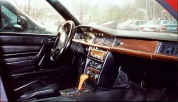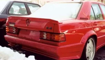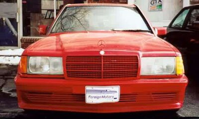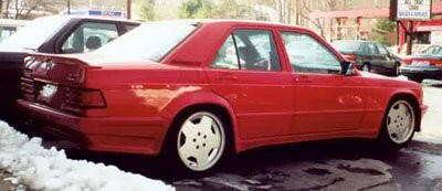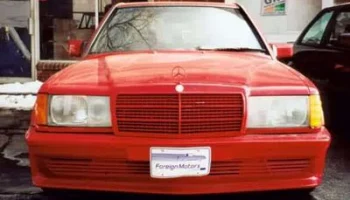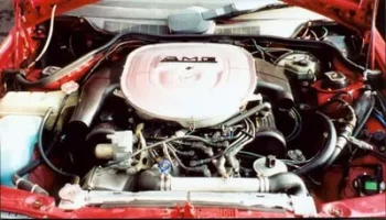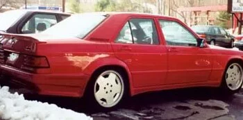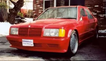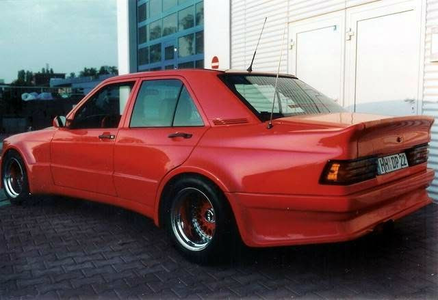 AMG 190E 6.0 литра, 400 л.с. Двигатель прошел доработку в тюнинговой компании и теперь повсюду красуются новые болты. Двигатель от 560 серии, V8, но с расточенными цилиндрами. Аккумулятор установлен в багажнике, чтобы добиться равновесия. Это — подлинный AMG повсюду, и это конечно видно. Добавлено больше деревянных деталей вокруг панели. Обивка салона выполнена из черной автомобильной кожи. Нет ничего от стандарного 190-го, различно все, карданный вал, дифференциал, радиатор, тормоза и т.д, все больше и лучше. Даже дополнительное подкапотное пространство удалено, с таким огромным мотором нет ни одного пустого места. Нет места для механического вентилятора с электромуфтой, охлаждение радиатора возложено на три электрических вентилятора на передней стороне, радиатор увеличен вдвое, шкивы расположены очень близко. Нет серпантинных ремней, только V-ремни. Этот автомобиль — так называемый widebody.